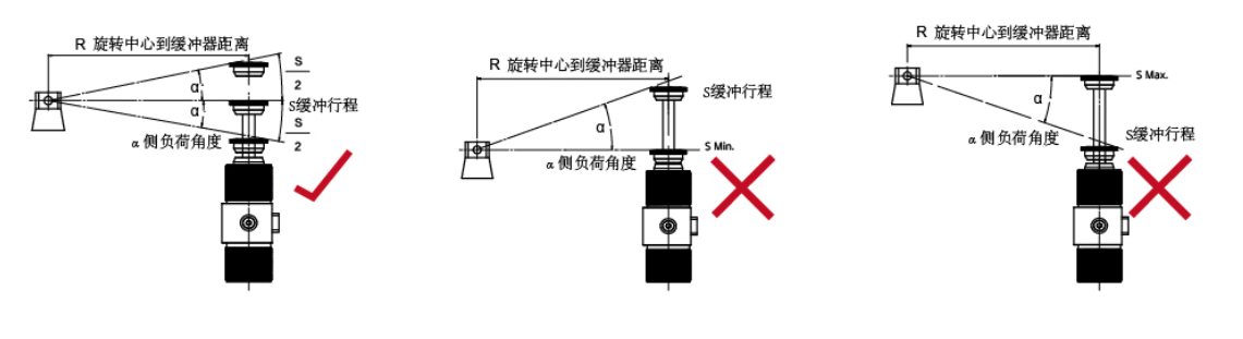 1. 緩沖器內充滿液壓油,切勿在明火附近使用,嚴禁焚燒緩沖器。 2. 確保在適用溫度內使用緩沖器(-10℃~80℃),若需在特殊溫度下使用,請聯系我們。 3. 禁止和酸、溶劑、乳化切削油等腐蝕性物資接觸,避免接觸灰塵、蒸汽等。 4. 禁止在緩沖器外缸體上噴涂油漆等,否則會影響其散熱效果。 5. 禁止在活塞桿上涂畫或做標記, 防止發生液壓油泄漏而縮短緩沖器的壽命。 |